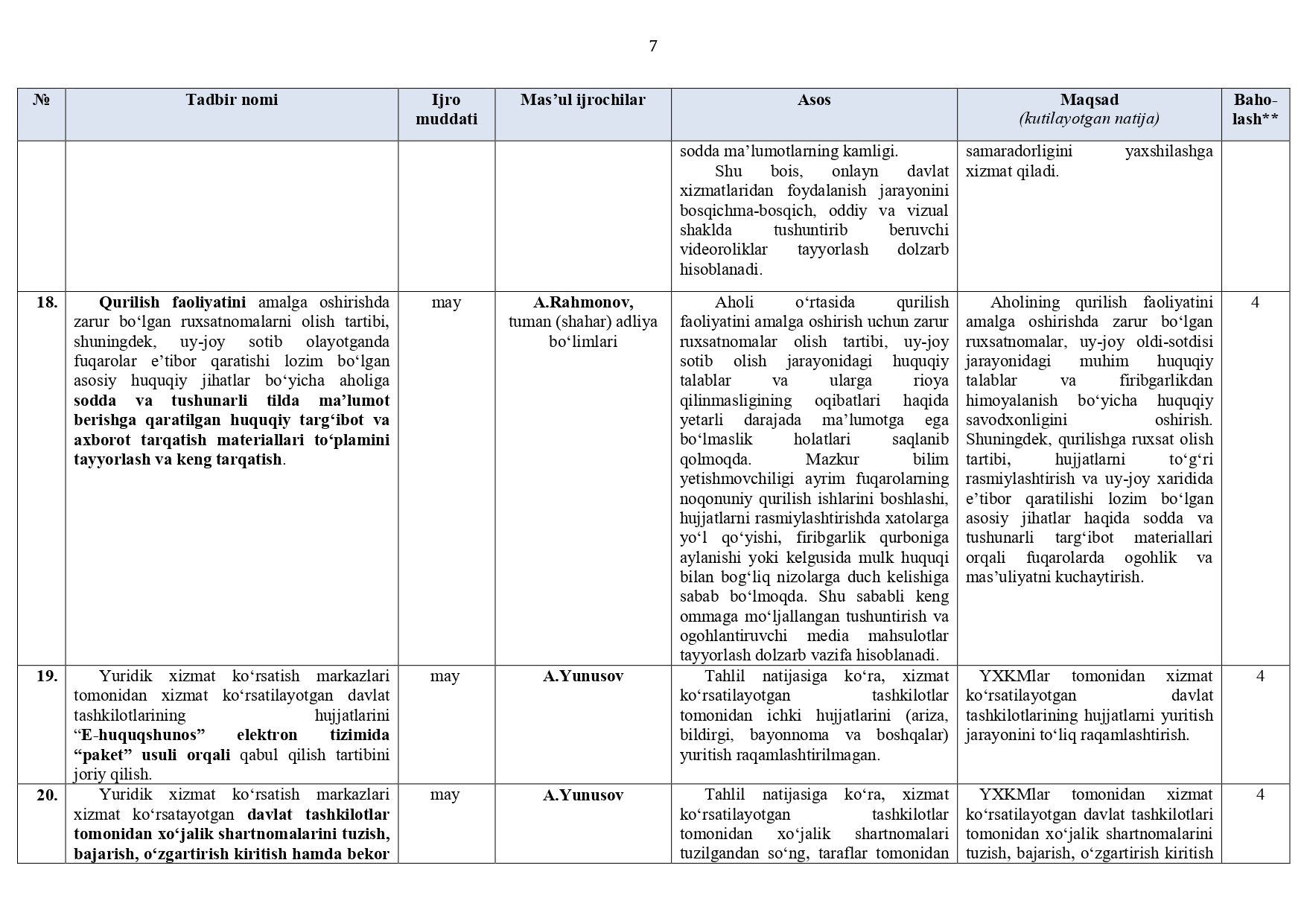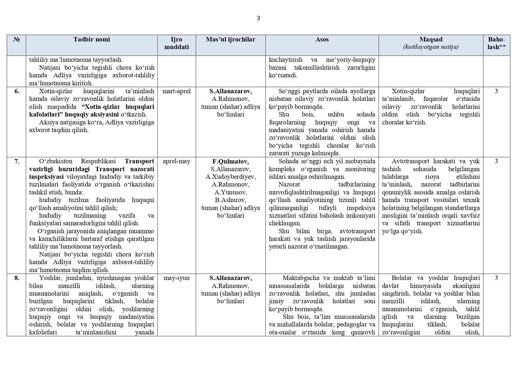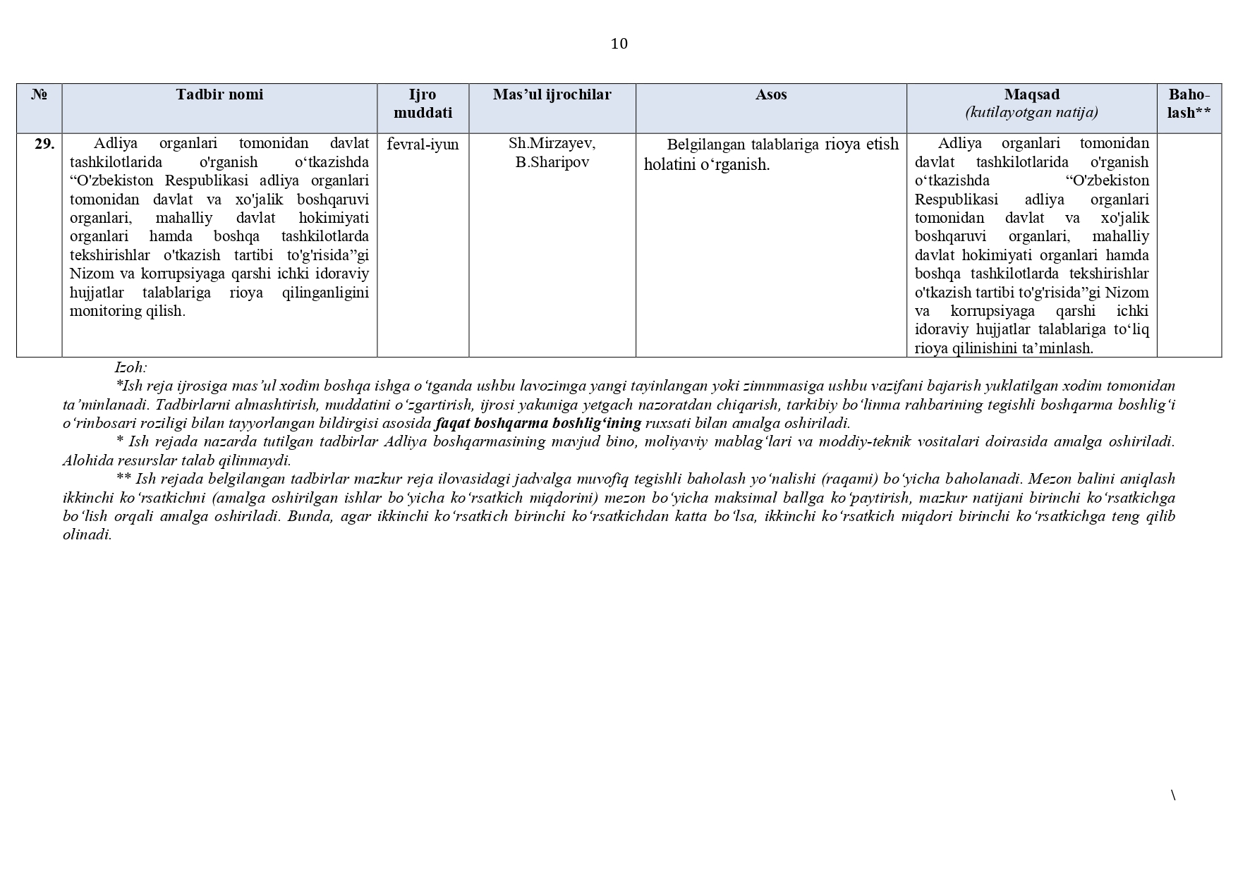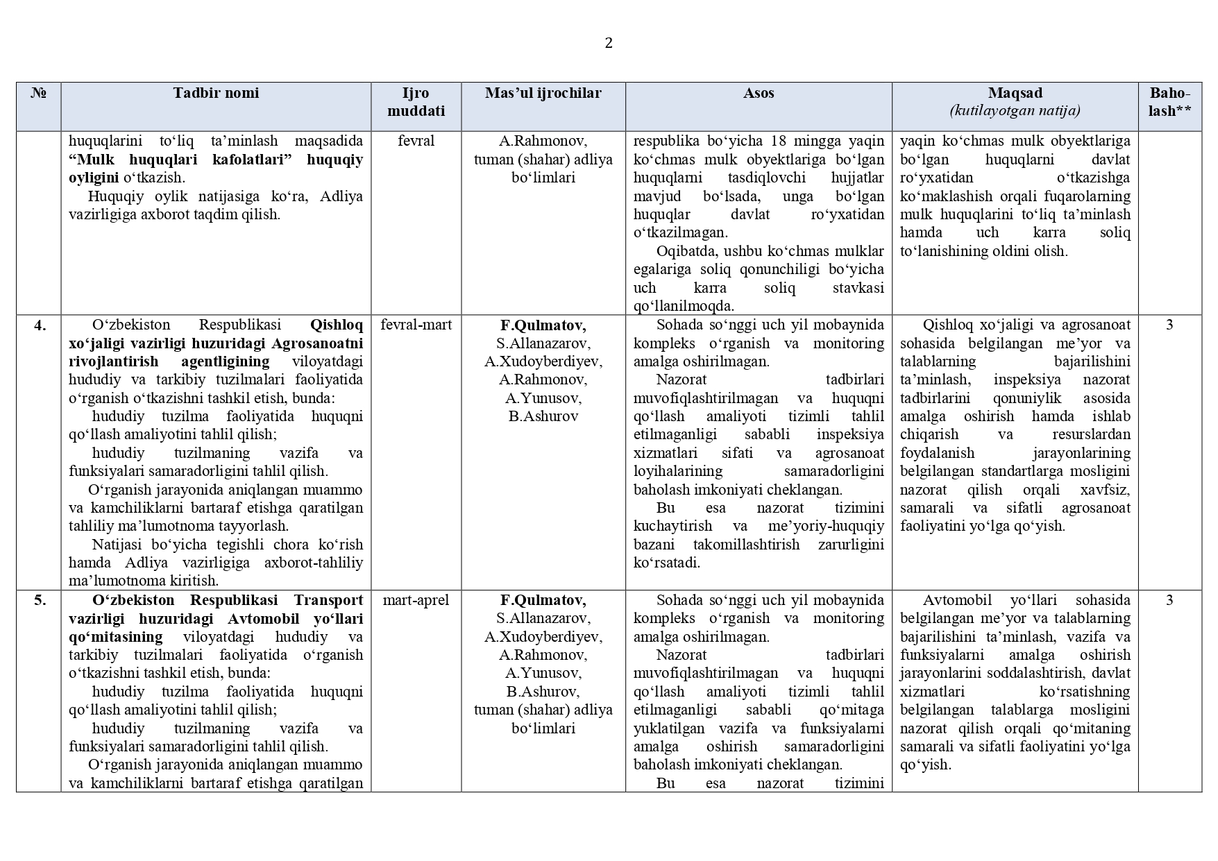 Surxondaryo viloyat adliya boshqarmasi hamda tuman (shahar) adliya bo‘limlari (jumladan, DXM, YXKM, FHDY)ning 2026-yil I va II choraklariga (I yarim yillikka) mo‘ljallangan ISH REJASI