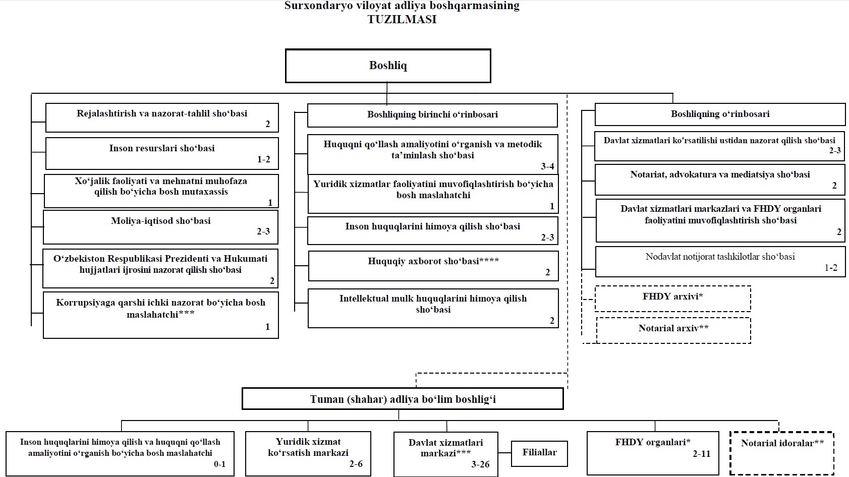 Surxondaryo viloyat adliya boshqarmasining TUZILMASI