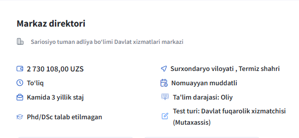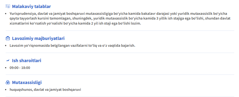 Lavozimi uchun rasmiy talab: